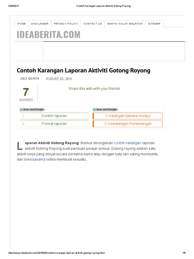Contoh laporan arus kas perusahaan jasa. Membangun hubungan sosial yang baik dengan sesama merupakan salah satu kunci hidup rukun. Contoh surat edaran resmi gotong royong. Sekiranya ya, berikut dikongsikan contoh karangan bahasa melayu spm yang merangkumi pelbagai tema dan tajuk untuk rujukan karangan jenis catatan: Hal ini tampak dari partisipasi masyarakat yang cukup antusias.